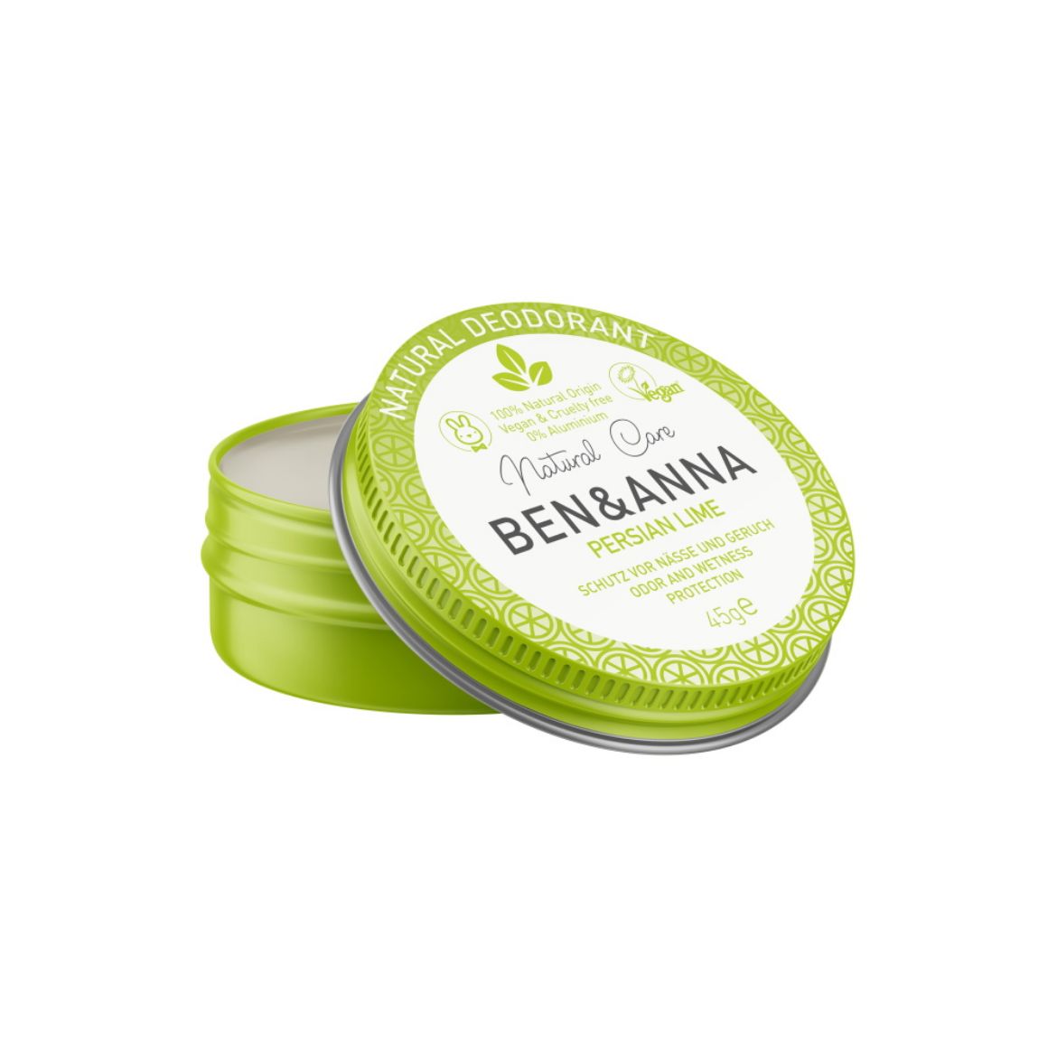 100% natural and without aluminium salts. Baking soda inhibits the formation of bacteria and arrowroot flour absorbs moisture.